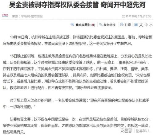 - 半岛网-城市信报.吴金贵被剥夺指挥权队委会接管 奇闻开中超先河[Z/OL].搜狐体育.(2011.10.17).//oss.weizhuangfu.com/uploads/20251116/zf3wbhweifj>