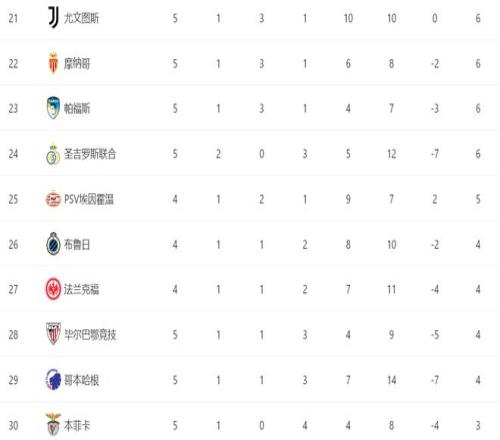 至此,帕福斯开局5轮取得1胜3平1负的战绩,积6分升至积分榜第23位,正好处于附加赛区,比本菲卡、阿贾克斯两支昔日冠军的排名还高。