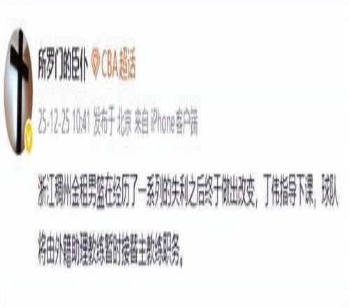 熬了5轮之后,浙江男篮终于还是顶不住了,让丁伟指导下课了!这是本赛季第三位下课的主教练了,眼瞅着浙江男篮战绩不理想,主帅丁伟无疑就是第一责任人了。既然浙江男篮待不下去了,下一站会去哪里呢?该不会真去新疆男篮接替刘炜吧。